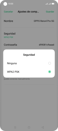 Pulsa WPA2 PSK para proteger la conexión wifi con una contraseña.