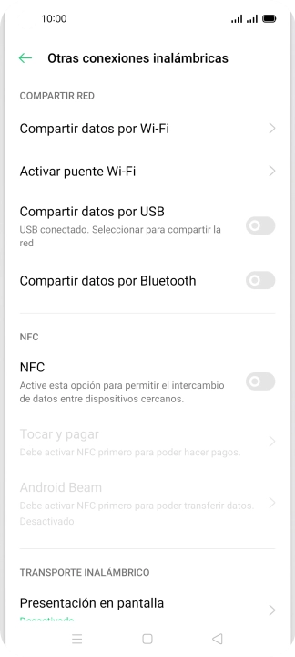 Pulsa el indicador junto a "Compartir datos por Wi-Fi" para activar la función.