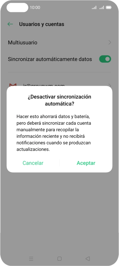 2 Activa o desactiva la sincronización automática de contenido