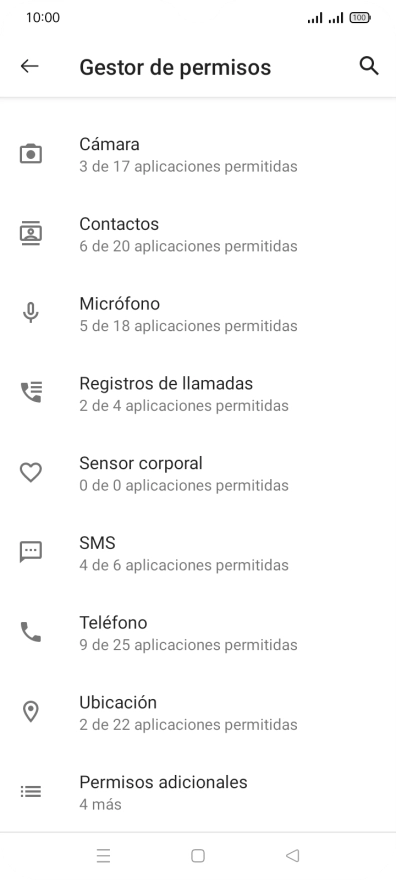Pulsa Gestor de permisos.
