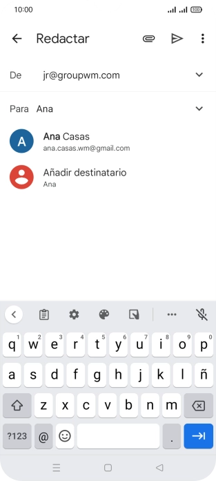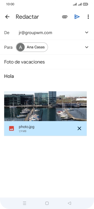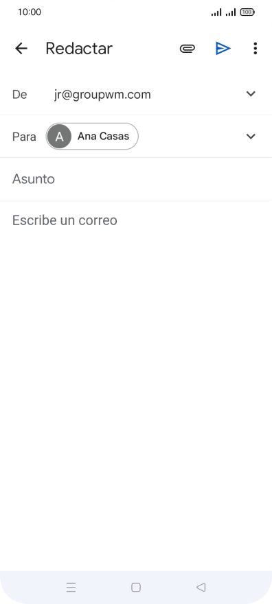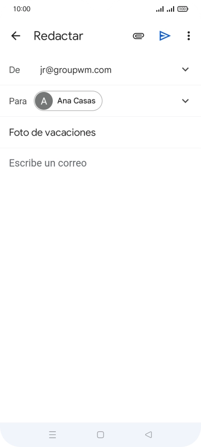 Pulsa el icono de envío cuando termines de escribir el correo electrónico.