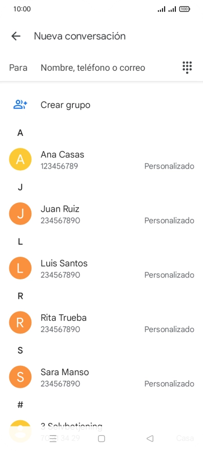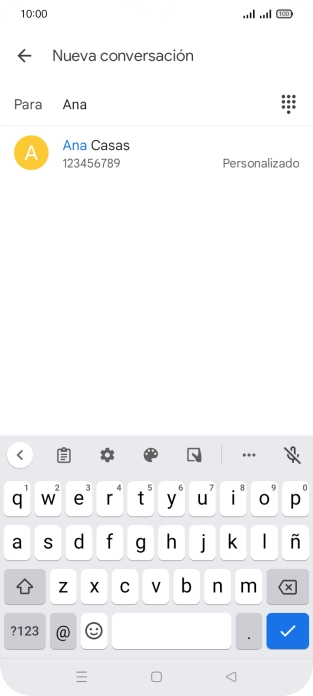 Pulsa el icono de envío cuando termines de escribir el mensaje corto.