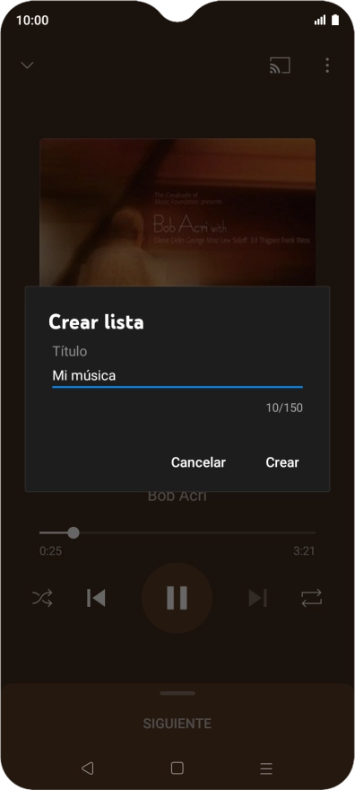 Introduce el nombre deseado de la lista de reproducción y pulsa Crear.