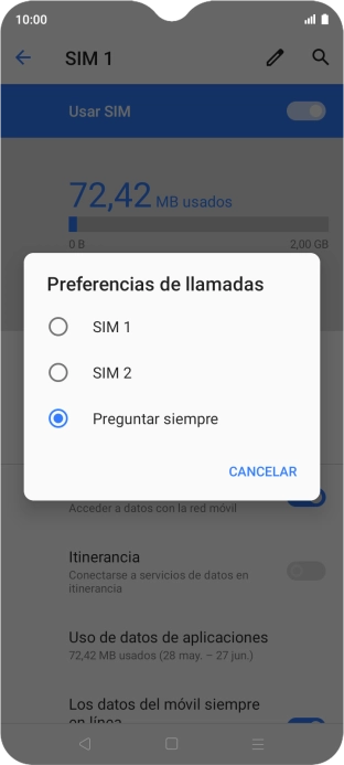 3. Selecciona la tarjeta que quieres usar por defecto para las llamadas