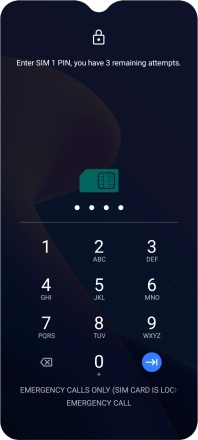 Si tu tarjeta SIM está bloqueada, introduce el código PIN y pulsa la flecha hacia la derecha.