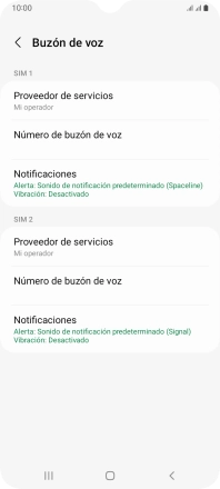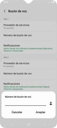 Pulsa Número de buzón de voz bajo la tarjeta SIM deseada.