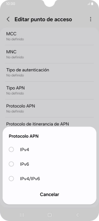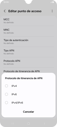9. Selecciona el protocolo del punto de acceso (APN) en roaming