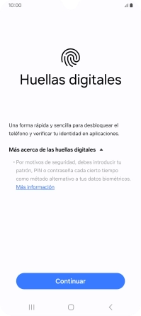 Sigue las indicaciones de la pantalla para crear una huella digital como código de seguridad.