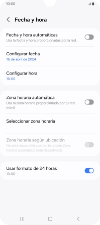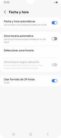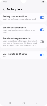 Pulsa el indicador junto a "Fecha y hora automáticas" para activar la función.