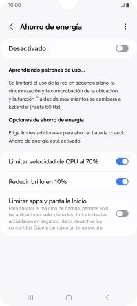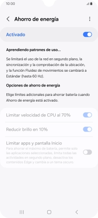 Pulsa el indicador bajo "Ahorro de energía" para activar la función.