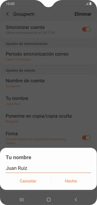 Introduce el nombre deseado de la cuenta de correo electrónico y pulsa Hecho.