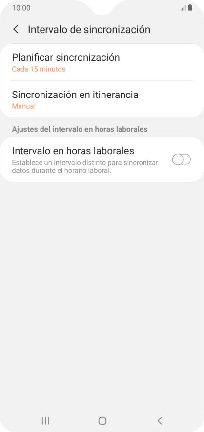 Pulsa Periodo sincronización correo.