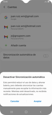 Activa o desactiva la sincronización automática de contenido en el Samsung Galaxy A12 Android 10.0