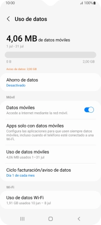 Puedes ver cuántos datos móviles has utilizado, por ejemplo, cuando has utilizado el navegador de Internet o cuando has enviado y recibido correo electrónico.