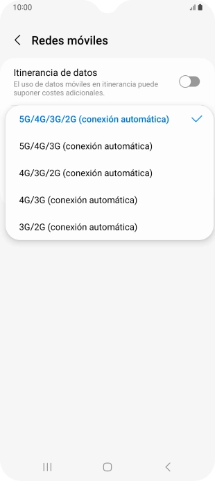 Puede haber diferentes tipos de red disponibles, dependiendo del lugar donde te encuentres. Si seleccionas la conexión automática con la red de mayor velocidad, tu teléfono siempre se conectará a la red de mayor velocidad disponible en cada momento
