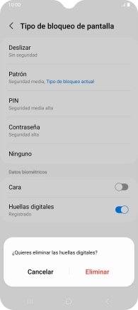 Sigue las indicaciones de la pantalla para crear una huella digital como código de seguridad.