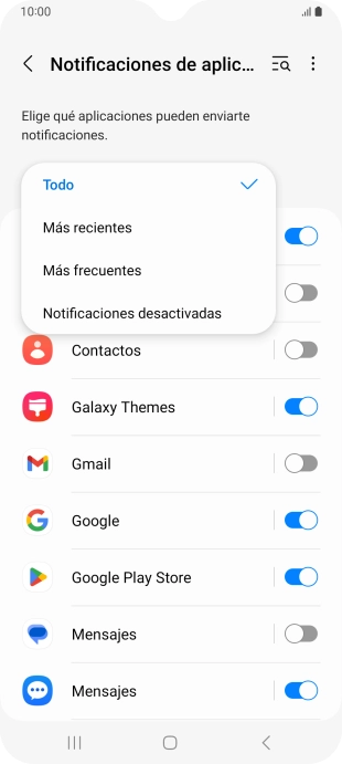 Pulsa el indicador junto a las apps deseadas para activar o desactivar la función.
