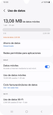 Puedes ver cuántos datos móviles has utilizado, por ejemplo, cuando has utilizado el navegador de Internet o cuando has enviado y recibido correo electrónico.