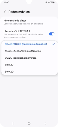 Puede haber diferentes tipos de red disponibles, dependiendo del lugar donde te encuentres. Si seleccionas la conexión automática con la red de mayor velocidad, tu teléfono siempre se conectará a la red de mayor velocidad disponible en cada momento.