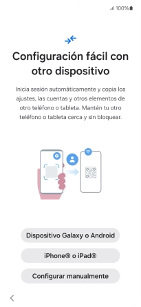 Pulsa la opción deseada para transferir contenido desde otro dispositivo y pulsa Configurar manualmente.
