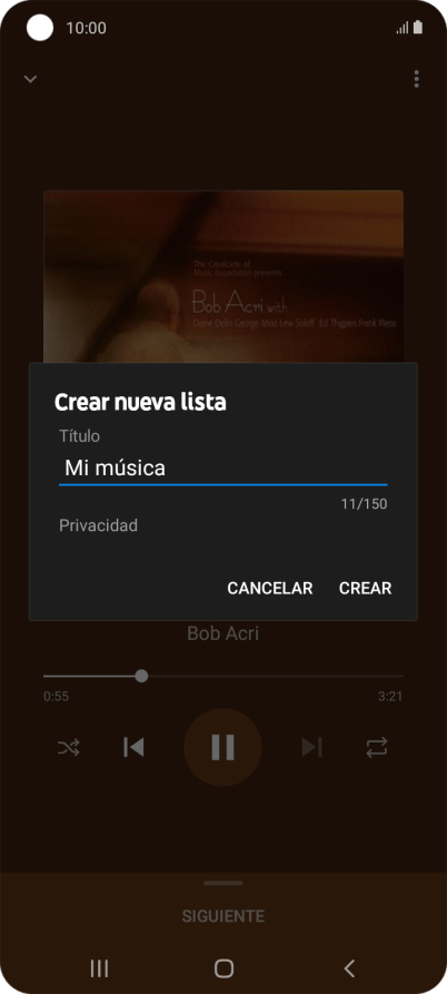 Introduce el nombre deseado de la lista de reproducción y pulsa CREAR.