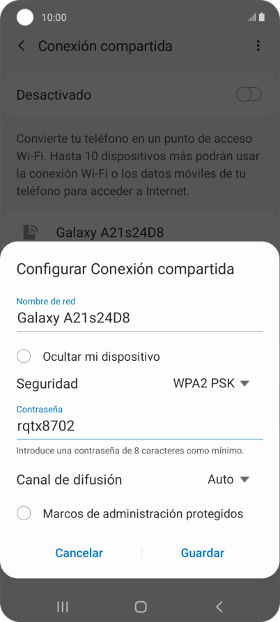 Pulsa WPA2 PSK para proteger la conexión wifi con una contraseña.