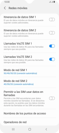 Pulsa el indicador junto a "Itinerancia de datos ‹SIM›" para activar o desactivar la función.