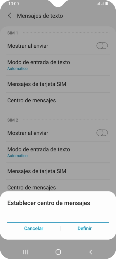 2. Introduce el número del centro servidor de mensajes cortos