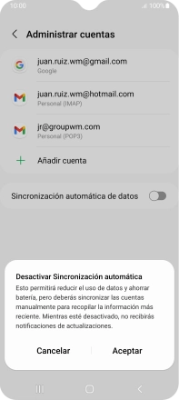 Pulsa el indicador junto a "Sincronización automática de datos" para activar o desactivar la función.