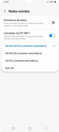Selecciona el tipo de red en el Samsung Galaxy A23 5G Android 12.0