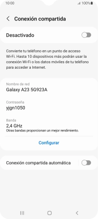 Pulsa el indicador bajo "Conexiòn compartida" para activar la función.
