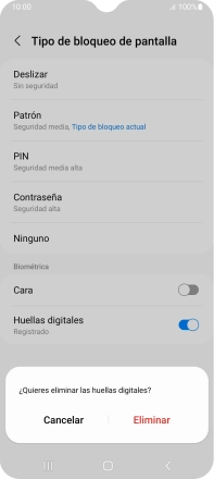 Sigue las indicaciones de la pantalla para crear una huella digital como código de seguridad.