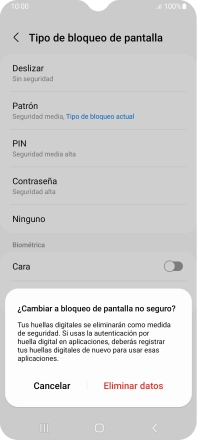 Pulsa Tipo de bloqueo de pantalla e introduce el código de seguridad extra que has creado anteriormente.
