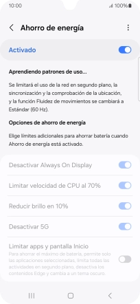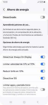 Pulsa el indicador bajo "Ahorro de energía" para activar la función.