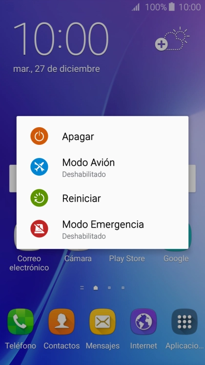 Mantén pulsado el botón de encender o apagar hasta que aparezca un menú emergente en la pantalla.