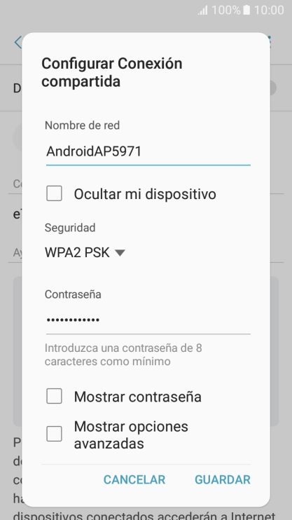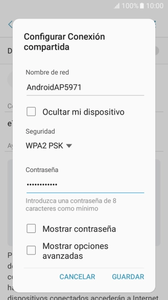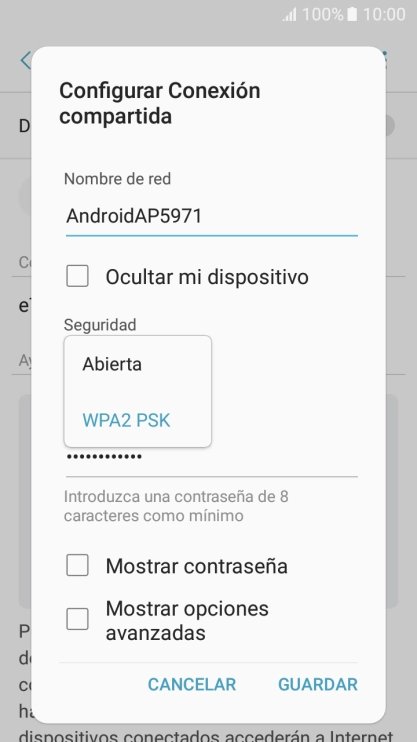Pulsa WPA2 PSK para proteger la conexión wifi con una contraseña.