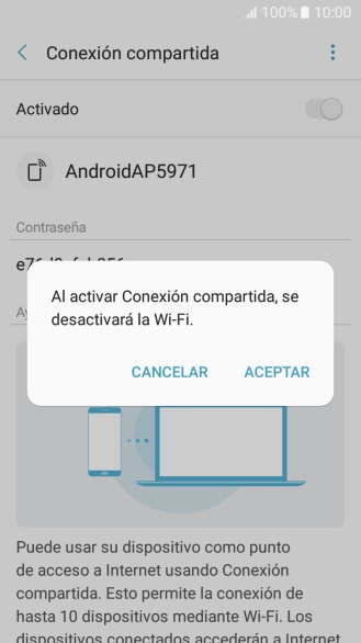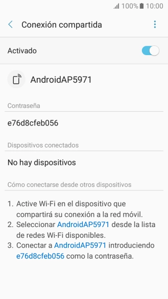 Cuando se haya establecido la conexión, tendrás acceso a Internet desde el otro dispositivo.