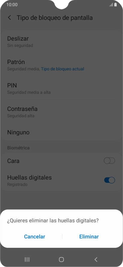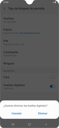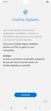 Sigue las indicaciones de la pantalla para crear una huella digital como código de seguridad.