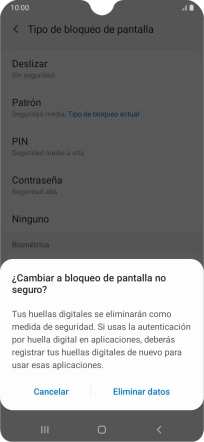 Pulsa Tipo de bloqueo de pantalla e introduce el código de seguridad actual.