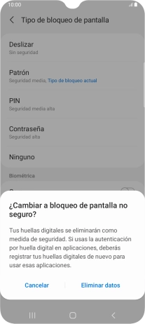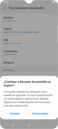 Pulsa Tipo de bloqueo de pantalla e introduce el código de seguridad extra que has creado anteriormente.
