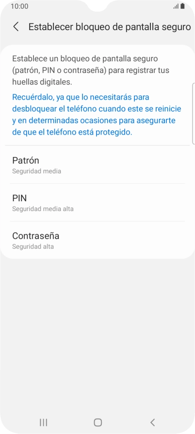Sigue las indicaciones de la pantalla para crear una huella digital como código de seguridad.