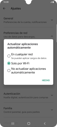 Para activar la actualización automática de apps a través de wifi, pulsa Solo por Wi-Fi.