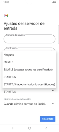 Pulsa Cuando elimine correos de Recibidos para eliminar los correos electrónicos del servidor cuando los borras del teléfono.