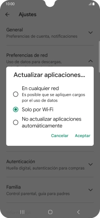 Para activar la actualización automática de apps a través de wifi, pulsa Solo por Wi-Fi.