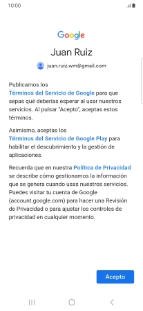 Pulsa Acepto y sigue las indicaciones de la pantalla para seleccionar los ajustes de tu cuenta de Google.