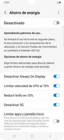 Pulsa el indicador bajo "Ahorro de energía" para activar la función.