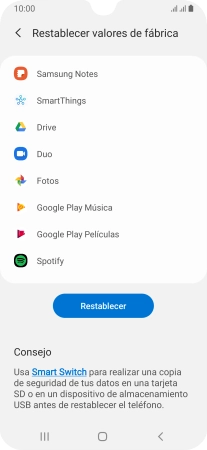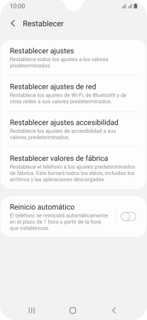 Pulsa Restablecer valores de fábrica.