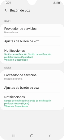 Pulsa Ajustes de buzón de voz bajo la tarjeta SIM deseada.