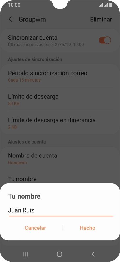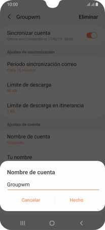 Introduce el nombre deseado de la cuenta de correo electrónico y pulsa Hecho.