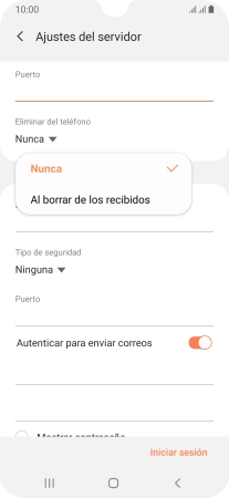 Pulsa Nunca para conservar los correos electrónicos en el servidor cuando los borras del teléfono.